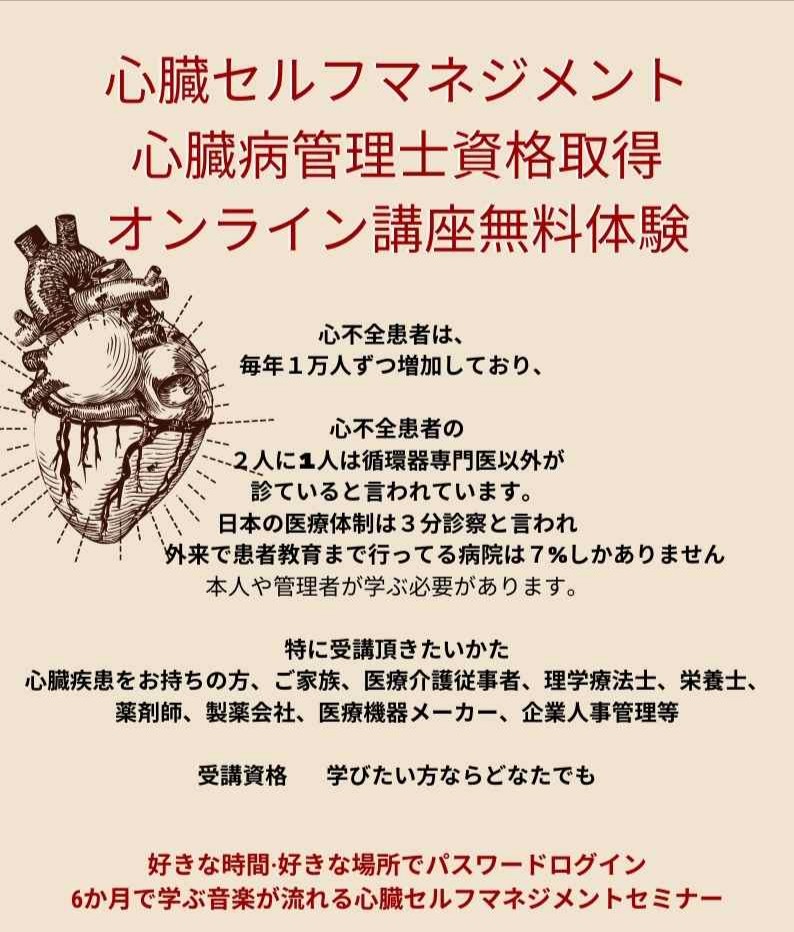今回、心臓病についての知識を皆さんにお伝えするための講座を開設することにしました。今回はその体験無料講座と説明会をいたします。